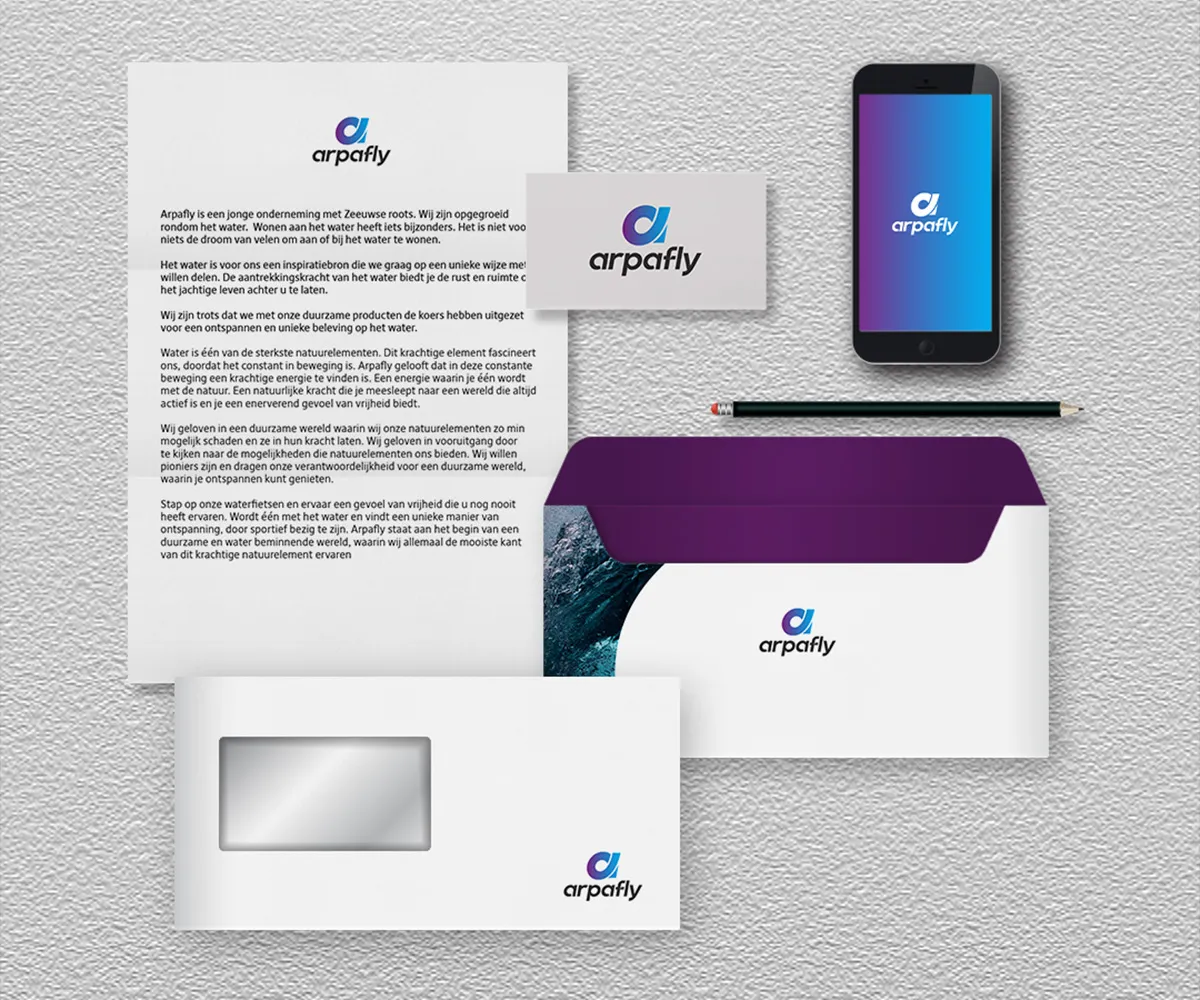 Het merk moest futuristisch aanvoelen, passend bij de innovatiekracht van het product, maar tegelijkertijd toegankelijk blijven. Die balans vormt de rode draad binnen de branding van Arpafly.